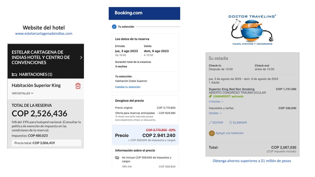 Obtenga ahorros superiores a $1.300.000 pesos (aprox.USD$290 por cada reserva) aplicando la tarifa especial del congreso en uno de los mejores hoteles de Cartagena y la comodidad de alojarse en el hotel sede.